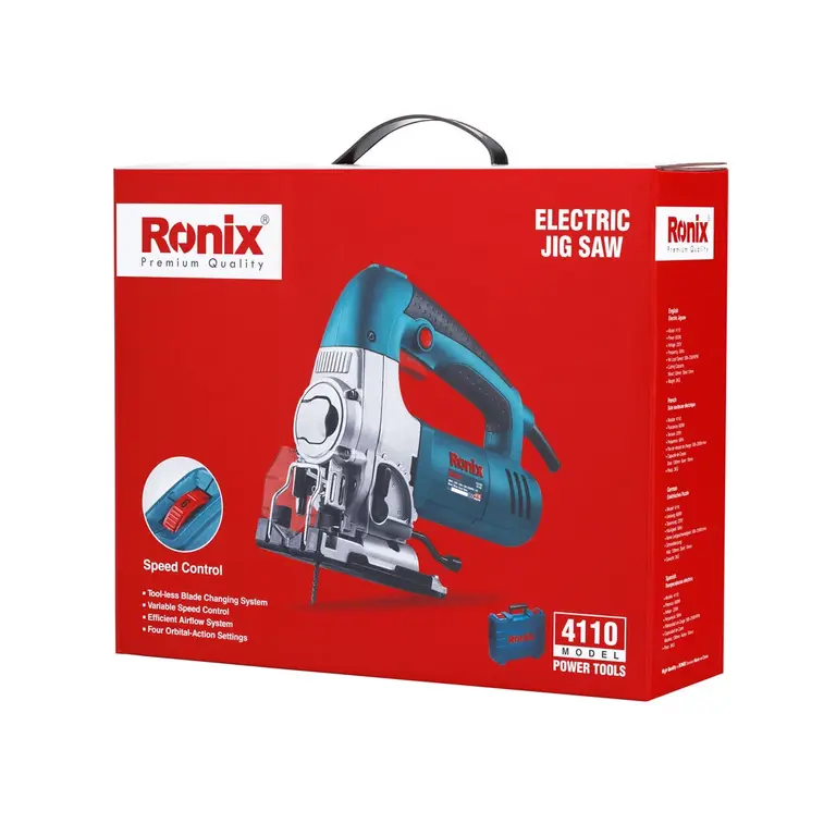 هنگام کار کردن با اره‌ های مختلف، دیدن مسیر برش از مهم ترین عوامل انجام دقیق ‌تر و تمیزتر کار است. اره ۴۱۱۰ رونیکس با دارا بودن سیستم دمنده باد، یعنی خروجی کوچکی در کنار محل قرارگیری ابزارگیر، مسیر برش را از ذرات چوب یا براده‌ های آهن و… پاک کرده و مسیر دید شما روی قطعه را مشخص می کند.